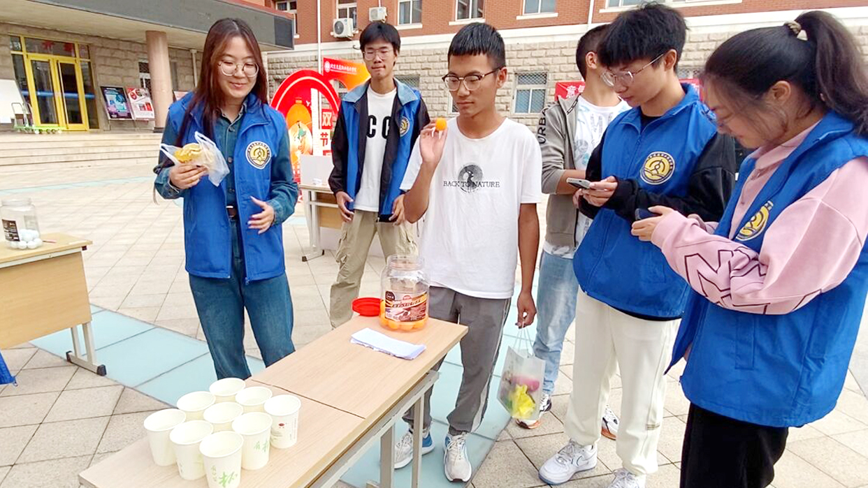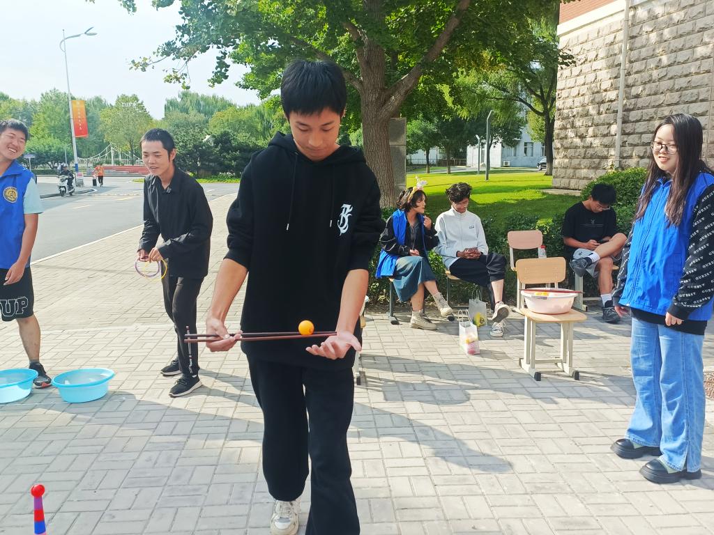 活动现场还设置了夹乒乓球、套圈、连连看等趣味游戏环节,同学们一边领礼品一边参与着各项趣味活动,脸上洋溢着感动与喜悦,每一声“谢谢”都浸满了幸福的味道,教一楼前弥漫着喜庆和甜蜜的节日气息。