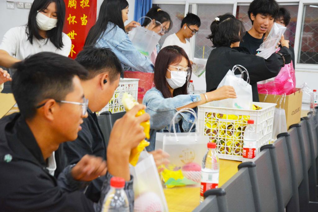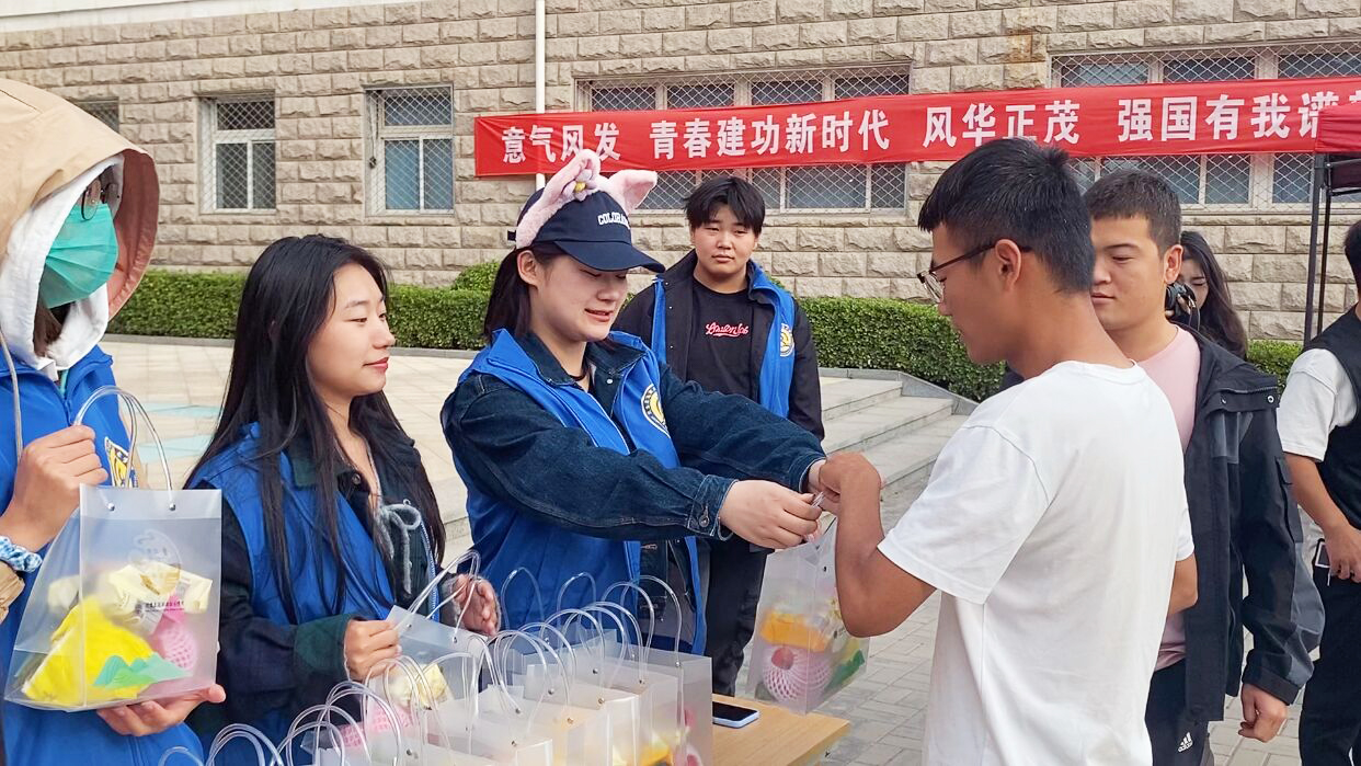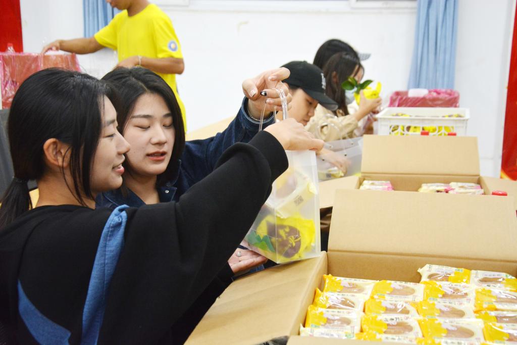 学院团委从采购到礼品袋设计等方面精心准备,志愿者们化身“派送员”,从卸货、搬运、分发、派送,将这一份特殊的心意送到在校师生手中。