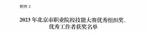 近日,北京市教育委员会公布2023年北京市职业院校技能大赛优秀组织奖名单,我院荣获2023年北京市职业院校技能大赛优秀组织奖。