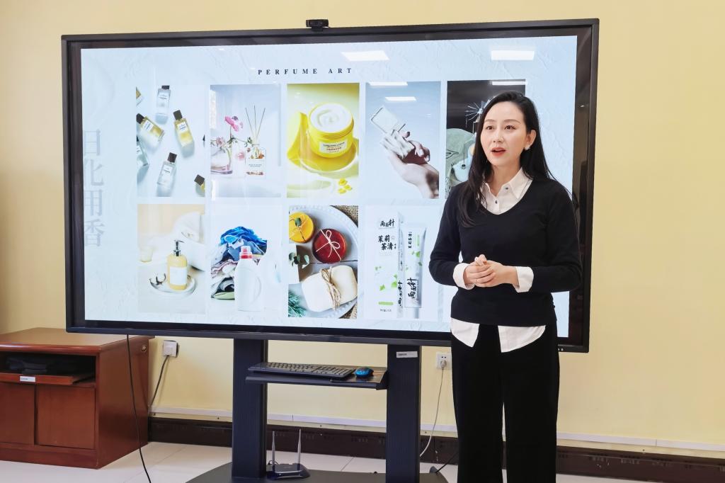 讲座中,陈敏老师结合其丰富的行业经验与教学积淀,系统阐述了调香师的职业前景、核心素养与发展路径,为学生们提供了清晰的职业规划参考。她从香水历史渊源切入,深入讲解了香水的构成体系和层级解析、香料分类及香气搭配原理,并通过生动的案例将专业知识变得通俗易懂。