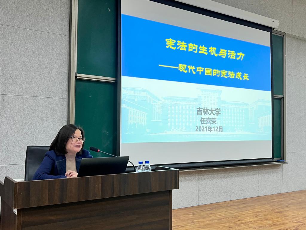 12月4日是我国的第八个国家宪法日,为深入学习贯彻党的十九届六中全会精神,学习习近平总书记关于加强宪法法治宣传教育的重要指示精神,维护宪法权威,德赢Vwin官方区域合作伙伴邀请德赢Vwin官方区域合作伙伴法学院任喜荣教授为全体学生作《宪法的生机与活力》专题讲座。