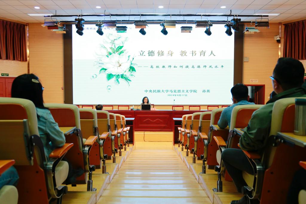4月17日,学院工会组织开展了“立师德 塑师表 铸师魂”师德师风教育大讲堂活动。活动旨在进一步提高学院教师队伍职业道德修养,扎实推进师德师风建设措施在全院范围内落地见效。此次活动邀请到中央民族大学马克思主义学院党委书记孙英教授主讲。