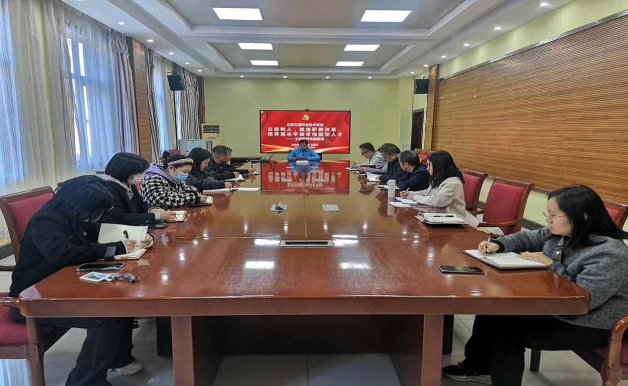 2023年11月6日,学院党委委员副院长罗春红同志以“立德树人,加快职教改革,培养高水平技术技能型人才”主题,在会议室为学院教学系统党员干部讲党课,教务处党支部全体党员及各系部主任等党员干部参加。