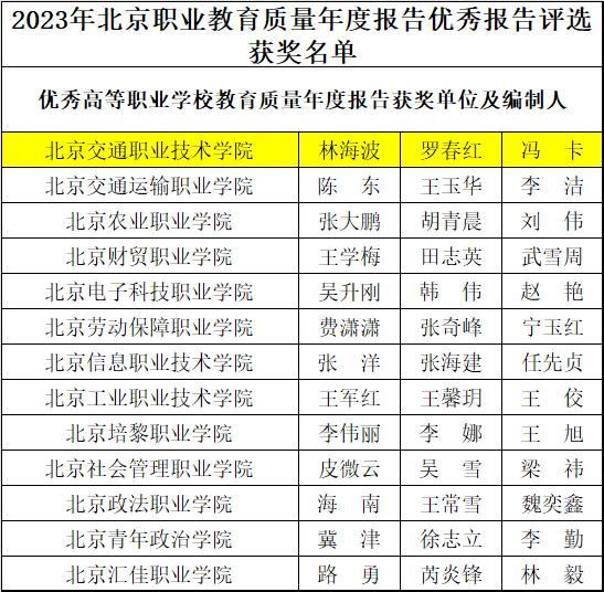 学院也将进一步加强人才培养状态数据采集和质量报告编制工作,做好数据分析和常态化教学质量监测,不断提升质量报告编制水平和应用实效,为推动北京职业教育高质量发展做出新的贡献。