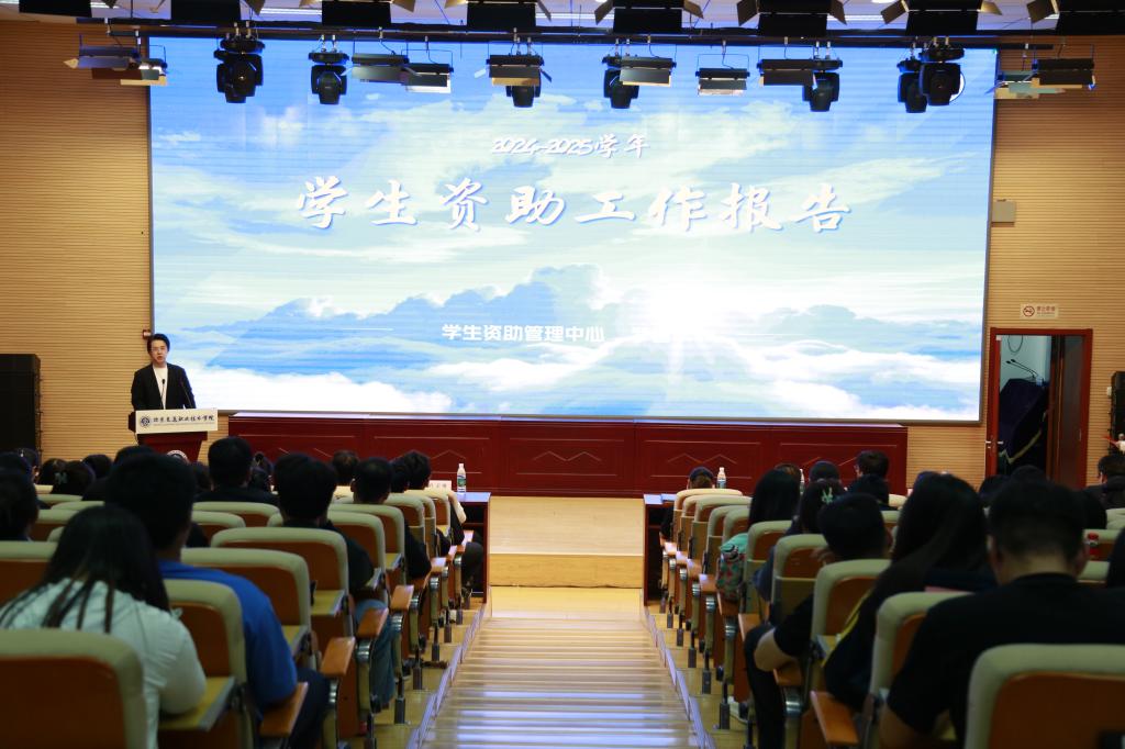 典礼在许靖宜、于美婕两位同学的资助成长故事视频中拉开帷幕。学生资助管理中心罗智丰老师首先作《2024-2025学年度学院资助工作报告》,他以详实数据展现学院“应助尽助”的承诺:去年9月至今,学院通过“奖、助、贷、勤、补、免”六大体系精准帮扶困难学子,发放国家奖助学金、中央奖补专项等资助金超245万余元,惠及学生1.2万余人次。罗老师表示:“一串串数字背后,是学院对每位学子未来的殷切期盼,更是托举梦想的坚实行动。”