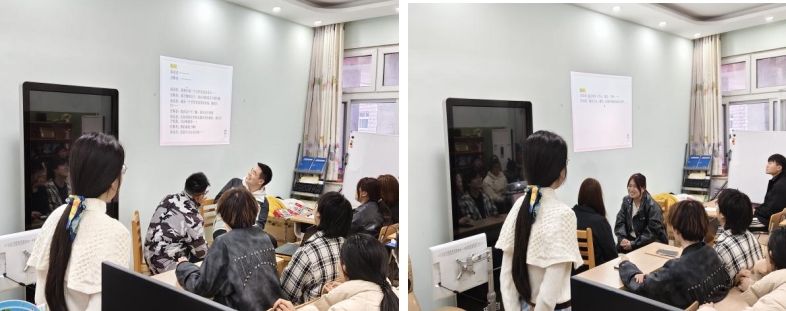 在“朋辈互助理论”方面,张老师结合同学们日常心理帮扶场景,重点传授了倾听反应技术、心理危机的关注与识别等实用技能。通过角色扮演、情景模拟和互动游戏,心理委员们沉浸式体验了“耐心主动倾听”“言语跟随”“复述与情感反映”等技术的应用场景,逐步掌握了如何通过共情与引导帮助同学疏解情绪。张老师强调:“有效的倾听不仅是技术,更是态度,只有真诚才能架起信任的桥梁。”