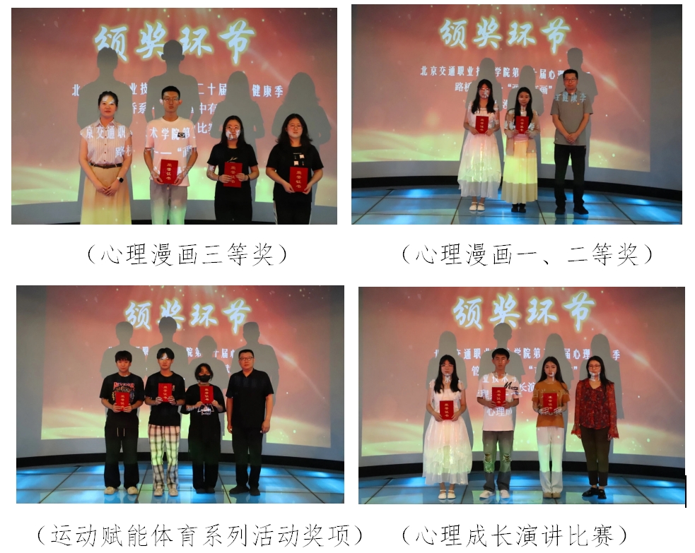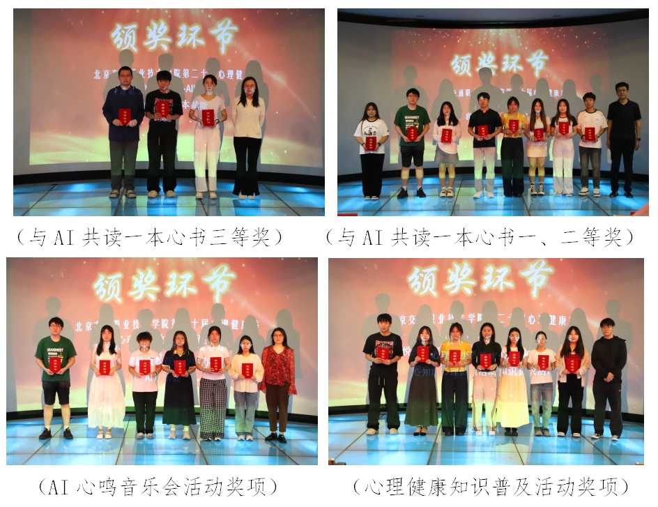 随着一段回顾视频的播放,我院第20届“5・25”大学生心理健康节闭幕式暨颁奖典礼拉开帷幕。本届以“美润心灵 AI 育未来”为主题,心理健康教育中心联动各系开展十余项活动,涵盖趣味运动、知识普及、才艺展示等多元领域,同学们踊跃参与,更有多人斩获北京市级奖项,尽显青春采。