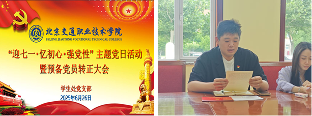 为庆祝中国共产党成立104周年,深入学习贯彻习近平新时代中国特色社会主义思想,进一步增强党支部的凝聚力和战斗力,做好发展党员工作,增强支部党员队伍的生机与活力, 2025年6月26日上午,学生处党支部在办公楼一层会议室组织开展“迎七一·忆初心·强党性” 主题党日活动暨预备党员转正大会。