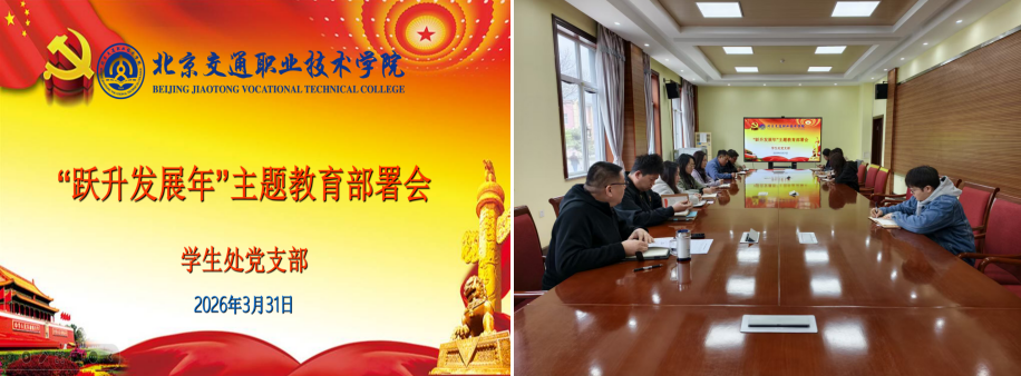 为深入贯彻党的二十届四中全会精神,认真落实上级及学院党委决策部署,巩固深化“作风建设年”“能力提升年”“实干争先年”“改革提质年”主题活动成果,进一步强化重担当、重实干、重实绩的鲜明导向,以跃升目标牵引工作,以工作实绩促进发展,2026年3月31日上午,学生处党支部在办公楼一层会议室组织召开“跃升发展年”主题教育部署会。