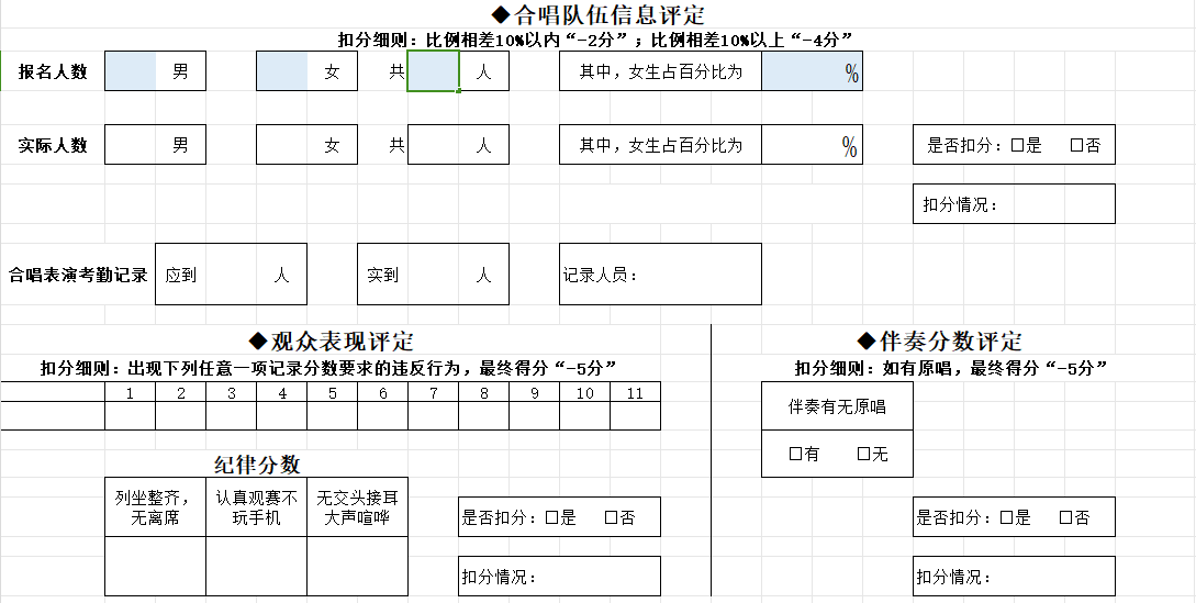 3. 纪念“一二·九”爱国运动合唱扣分评定表