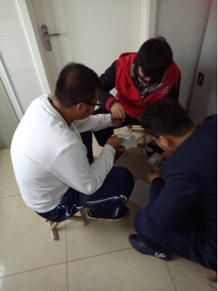 到了德胜门公交总站以后,大家领取了材料之后很快的进入了工作状态。按照之前的分组,一部分人写学生信息以及修剪相片,一部分人粘贴防伪标签。