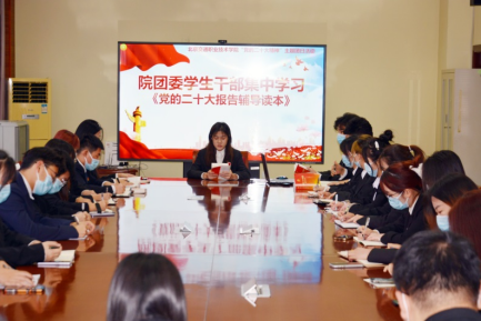 我院团委将秉承党的二十大精神,继续带领广大青年坚定不移听党话、跟党走,展现新时代新担当新作为,推进学院高质量发展。学生骨干也将以身作则,最大程度的发挥干部先锋模范作用,全心全意为同学服务,让“强国有我,强院有我”落在实处,交出让党放心、不负时代、无愧青春的答卷。
