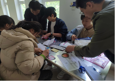 现场办理过程中李老师和6名志愿者分工明确,按照办理公交卡流程的八个环节:盖校章、填写学生信息、修剪粘贴照片、粘贴防伪标签、盖公交卡印章、粘贴卡片、粘贴公交卡保护膜、整理检查装入信封有序进行,团队相互配合,井然有序,高效的将100张公交卡全部办理完毕。最后检查无误后,将公交卡分别按专业班级重新放回信封中,以方便将公交卡发放到各同学手中。办理结束后并将工作中产生的垃圾一一清理,保持了公交总站办理场所的干净整洁。