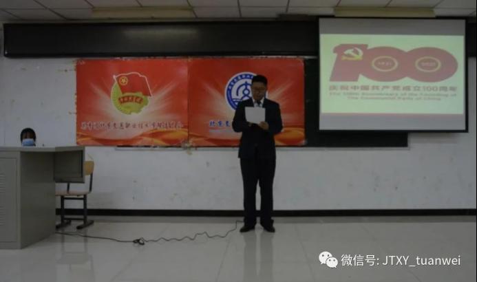 为喜迎伟大的中国共产党百年华诞,传承和弘扬党的光荣传统和优良作风,进一步激发全院广大青年团员爱党爱国热情。我院于2021年4月14日在教一楼122教室开展以《喜迎建党100周年华诞》为主题的团课活动。据我院疫情防控相关要求,团课分两场开展。团课主持人由广播站李骏同学担任。
