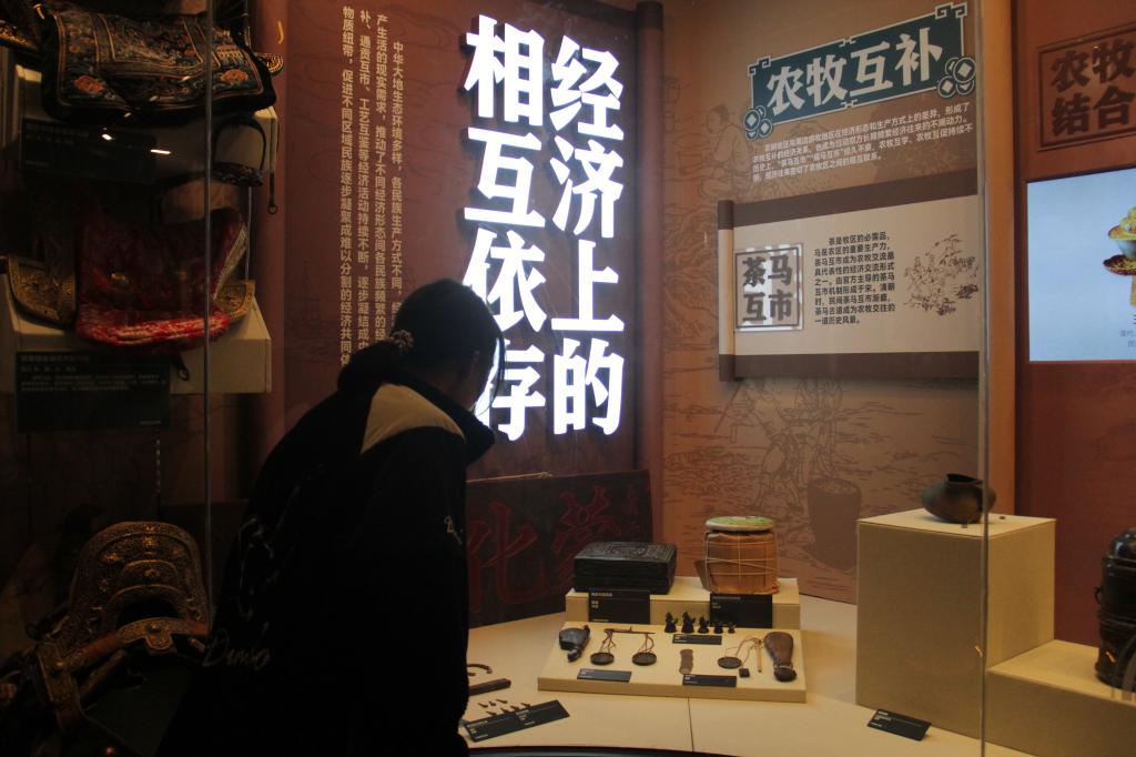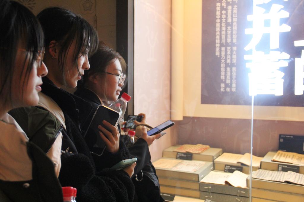 本次展览分为"大一统""大交融""大团结"三个单元,陈列在此的许多文化古籍,向学生干部们展现了中华民族共同体形成、发展的璀璨历史。从经济、文化、历史等多个维度,展现中华文明延续不断的历史基因、中华民族凝聚不散的历史密码和中华民族大团结的深邃思想与丰富实践。