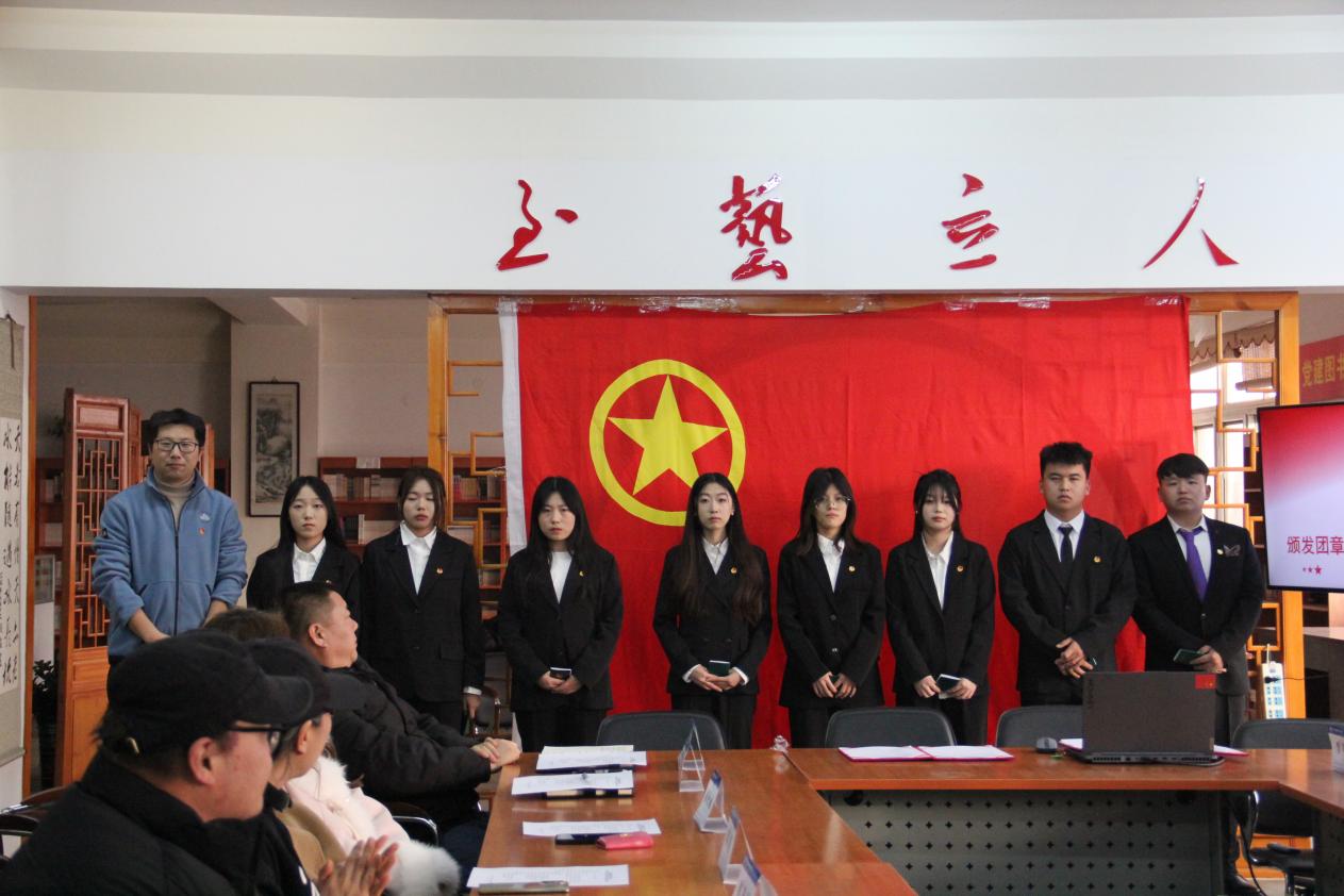 各系党支部书记为新团员颁发团章、团员证,佩戴团徽。