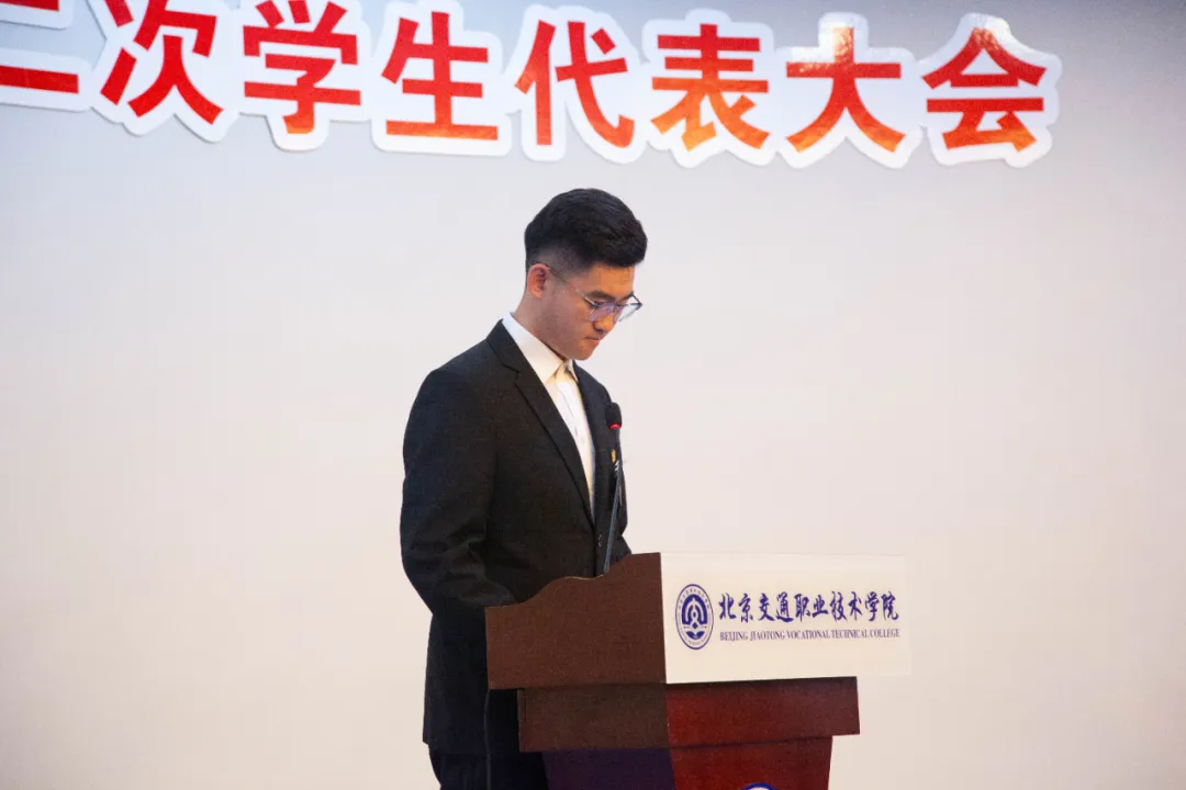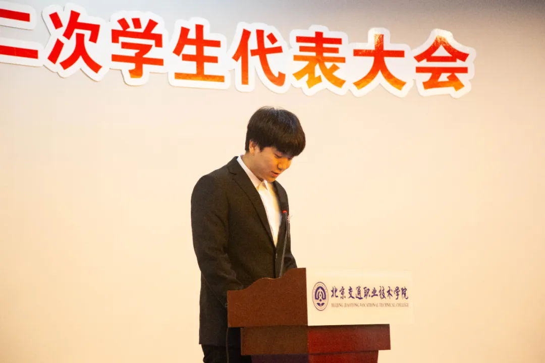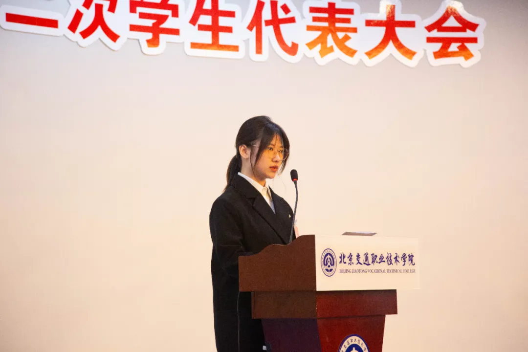 随后,大会先后审议并通过了《第十二次学生代表大会提案及筹备工作报告》、《第十二次学生代表大会代表资格审查报告》。吴佳益作题为《志存高远担使命 实干笃行谱新篇》工作报告,全面回顾过去一年工作:通过“团学干部思想交流会”等活动深化理论学习,组织“一二九合唱比赛”“体育文化节”“辩论赛”等品牌活动丰富校园生活,依托“青春交院”公众号宣传在校学子的点滴,在学院四十周年办学成果展示系列活动中展现青年担当,报告明确了学院学生会未来的工作方向,将从深化主题教育、助力学风建设、加强自身建设等方面发力,打造更具凝聚力的学生组织。