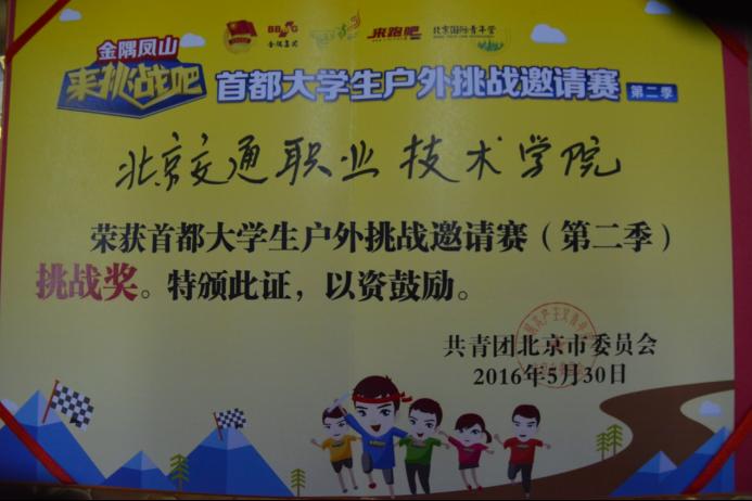 bevictor伟德官网作为北京市高职院校代表,由团委颜金海老师、院学生会于文东同学领队,院团委学生会干部代表参加了此次比赛。由陈佳炜、魏晨、于鹏辉、靳璐阳、祝子悦组成的参赛队荣获北京市挑战奖。