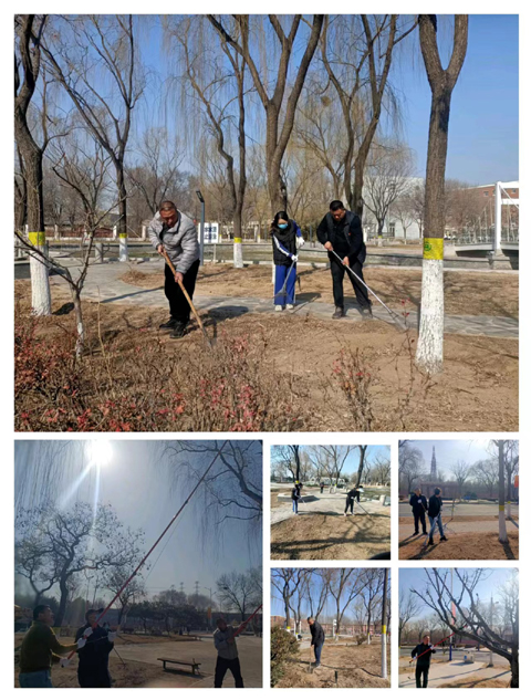 本次党员义务劳动的内容是清理学院公园绿地里面的枯枝、枯草、石子等,范围是亚欧大桥周边绿地。总务处李波同志给大家准备了劳动工具,在支部书记王廷军同志的带领下,党员们分工协作,积极投入到各自的责任区域,将枯枝、枯草等清理干净。