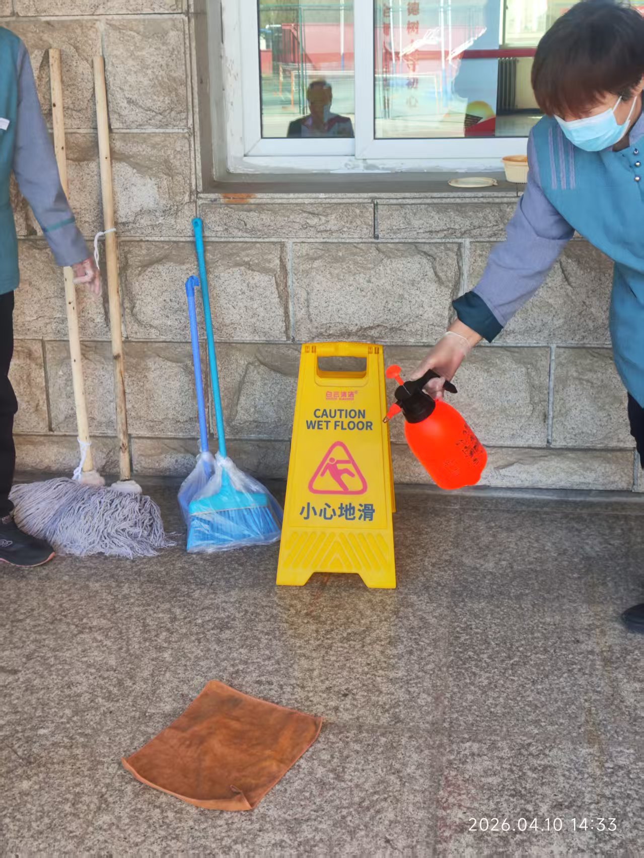 4月10日下午14时,学院总务处组织全体保洁人员在教一楼阶梯教室及教学楼内开展诺如病毒防控专项培训与应急实操演练,总务处副处长李波担任主讲并全程指导。