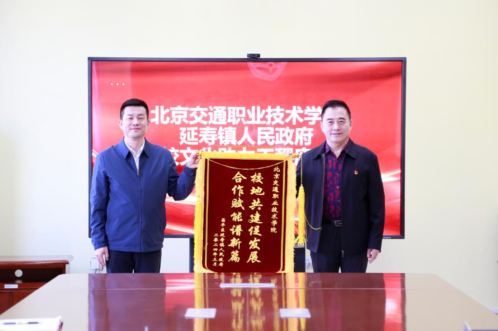 3月19日,延寿镇党委书记罗立华一行4人来到bevictor伟德官网,赠送了一面印有“校地共建促发展 合作赋能谱新篇 ”的锦旗,对学院在高校文化助力工程中所做的工作表达感谢。学院党委书记、院长林海波,党委委员、副院长李大泳,继续教育办公室主任武红共同出席,双方回顾了前期合作成果,并就后期工作规划进行洽谈。