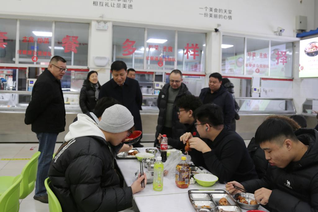 在走访教学楼、实训室、学生宿舍、食堂等重点区域时,党委书记张友鑫详细察看了教学设施运行、实训设备维护、住宿环境与食品安全等情况。他强调,要持续做好教室及公共区域的环境维护与设施巡检,及时排查并消除各类安全隐患,全力营造整洁、有序、安全的校园育人环境。