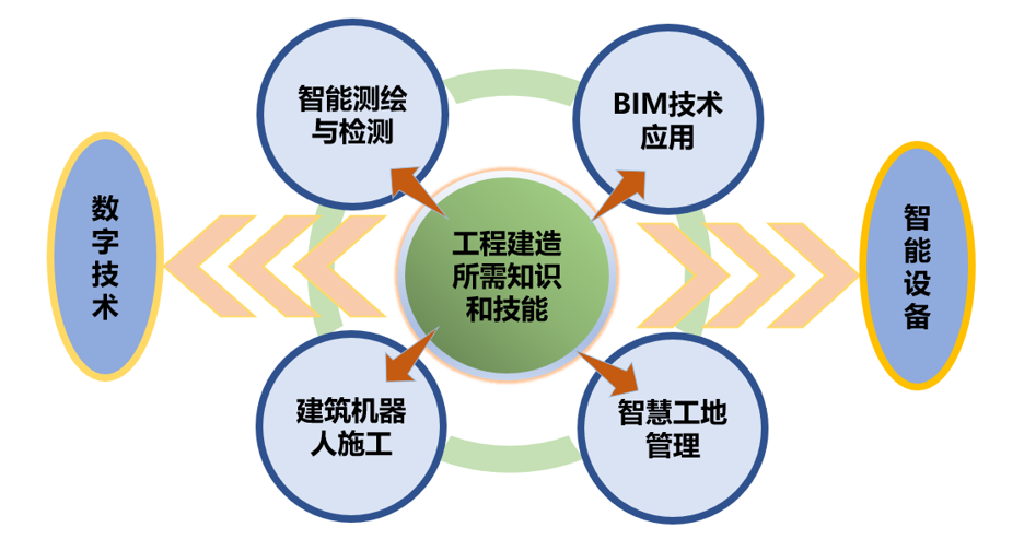 智能测绘、智能检测与监测技术、建筑工程智能施工、装配式施工、工程项目智慧管理、BIM技术综合应用。