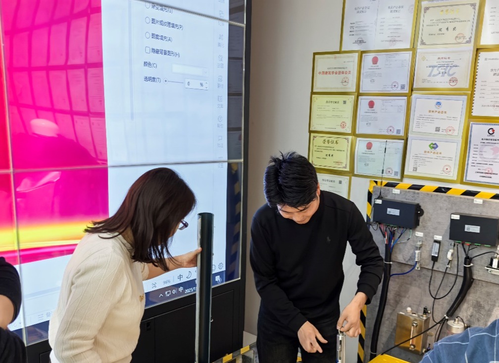 在交流座谈环节,公司董事长刘洋、总经理任美容与教师团队围绕行业人才需求与高校课程体系建设展开深入讨论。双方一致认为,智能建造专业人才培养应紧密结合行业数字化转型趋势,强化学生在传感技术、数据采集、结构分析与平台运维等方面的实践能力。