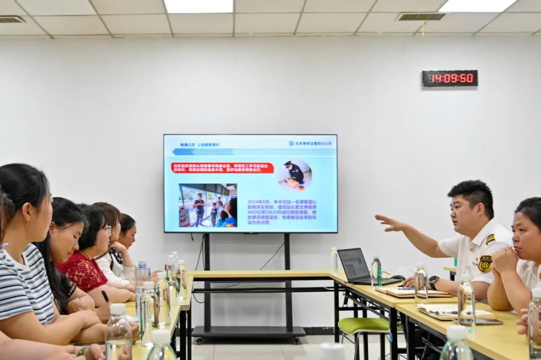 刘站长特别分享了车站在大客流组织、应急事件处置等方面的典型案例,以及站区员工在服务保障中涌现出的先进事迹。"我们的工作人员始终坚守岗位,用实际行动保障乘客安全出行,充分体现了地铁人的责任与担当。"刘站长的讲述让在场师生深受感动。站区书记在发言中表示:"希望以此次活动为契机,与轨道交通系建立长期合作关系。"这一提议得到了师生们的热烈响应。