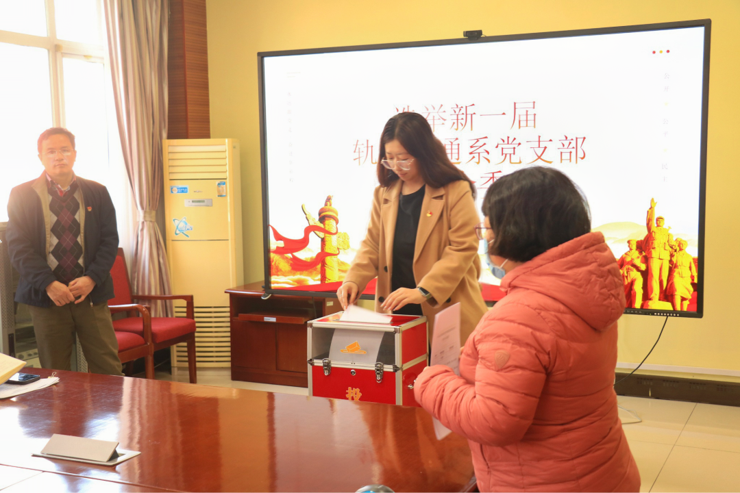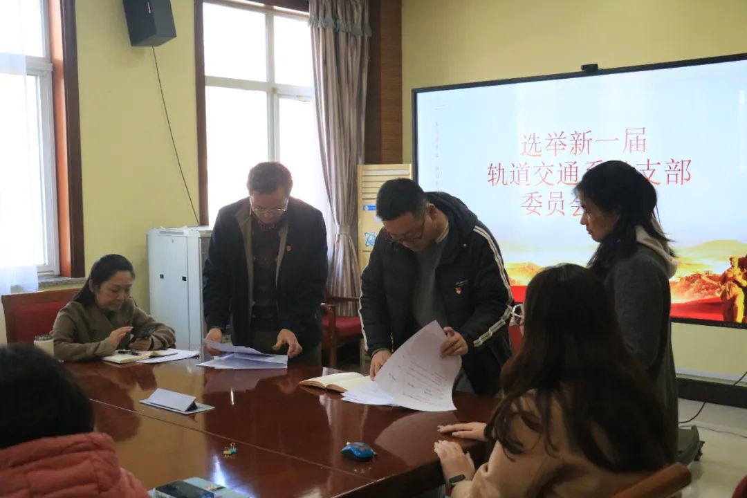 上一届委员会指定刘亚磊同志为计票人,大会通过方兰和李传松两位同志为监票人。经具备选举权的党员现场投票、现场计票、现场唱票。委员候选人4名,差额选举产生委员3名。黄亚楠、贾文婷、王圣洁3名同志当选为新一届轨道交通系党支部委员会委员。