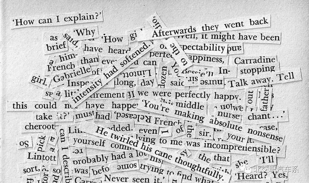 那么,请拿起剪刀,将废纸变为诗句,让创造的神思在字里行间奔涌,去创造属于你自己的拼贴诗吧!
