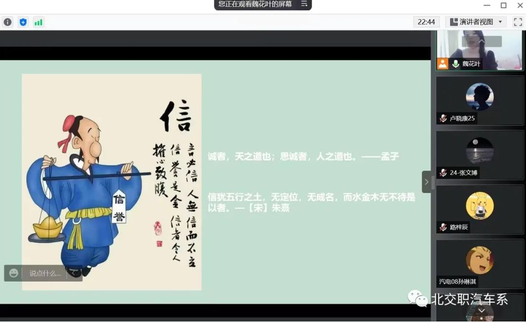 为了广大学生对于能够树立起以诚为本的理念,汽车系为此展开了《以诚为本,以信立人》的主题教育班会,汽车系全体成员参加,诚信是中华民族的传统美德,是社会主义核心价值观的重要内容,更是大学生立身为人、成长成才的必备品质。