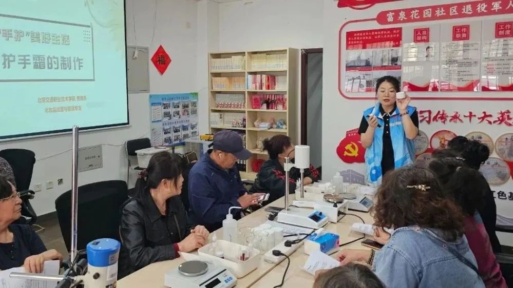 5月8日,bevictor伟德官网联合北京银行昌平管辖行、城南街道办,在富泉花园社区开展“京邻相伴 昌聚未来”主题系列活动之“美颜实验室”DIY化妆品。本次活动旨在通过动手实践,让社区居民了解传统化妆品制作工艺,体验DIY的乐趣,同时提升社区居民的生活品质。此次活动的内容是制作护手霜,共有20名社区居民参与,现场气氛活跃,参与者们在轻松愉快的氛围中学习到了实用的化妆品制作知识。