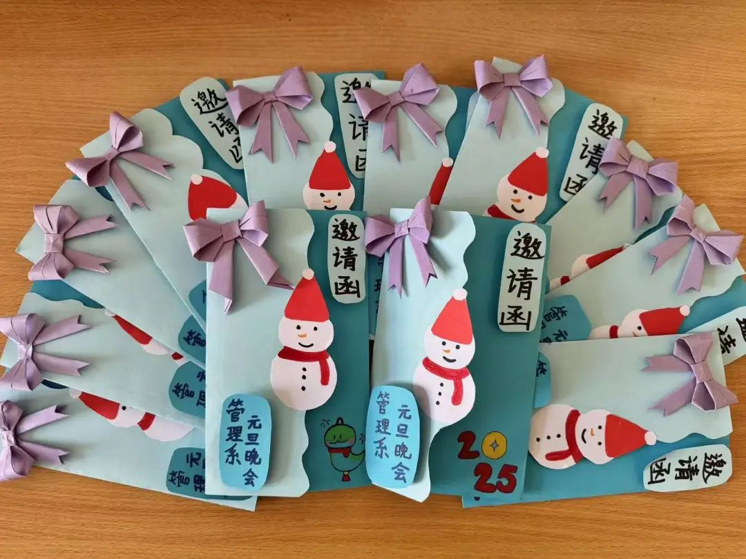 管理系为元旦联欢会精心筹备,不仅挑选了丰富多样的零食礼包,还为同学们准备了特别定制的笔,笔上印着每位同学的名字,此外还有互动小玩具。在前期准备过程中,同学们认真排练节目,老师们仔细监督彩排,大家齐心协力,都希望在联欢会上呈现出最佳的节目效果,共同度过一个欢乐难忘的元旦佳节。