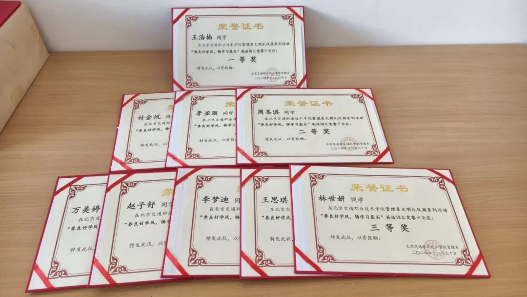 三等奖:李天翔、王正炎、吕琳、李亚丽、万美婷