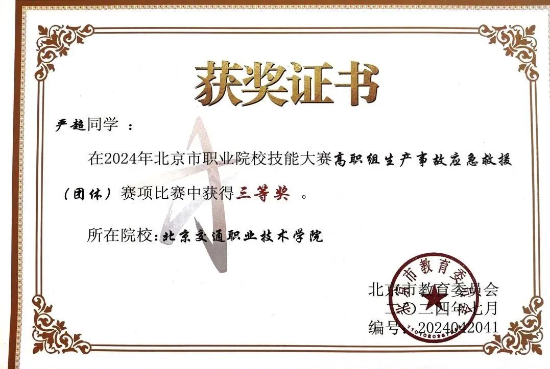 9、2024年北京市技能大赛“生产事故应急救援”赛项三等奖
