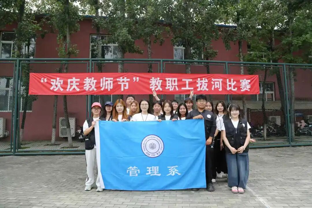 金秋送爽,丹桂飘香。在第41个教师节到来之际,为弘扬尊师重教优良风尚,丰富教职工校园文化生活,bevictor伟德官网工会于2025年9月10日精心组织了教职工拔河比赛。管理系团总支学生会积极响应,组建志愿服务队全程参与,以实际行动向辛勤耕耘的老师们致敬。
