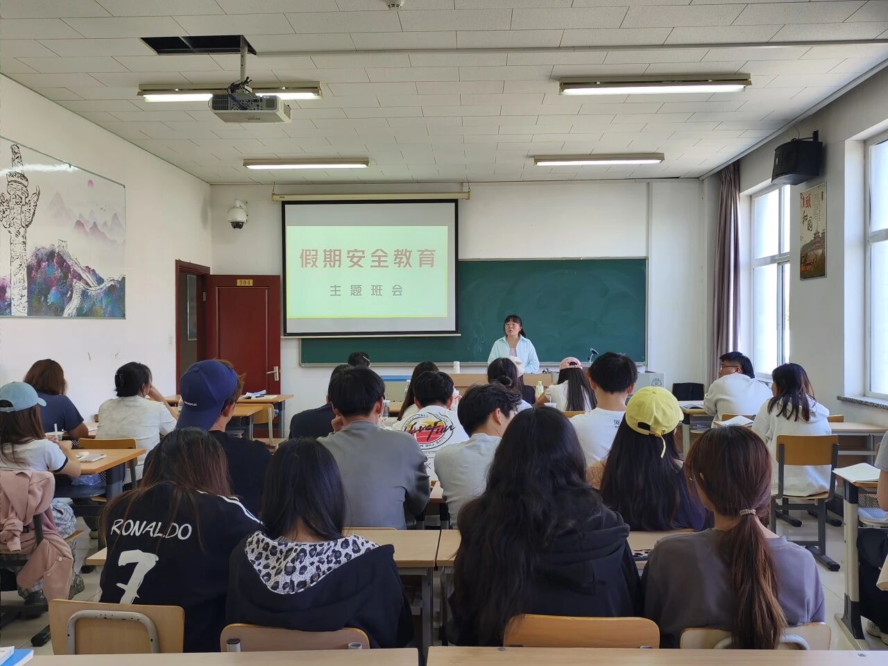 刘璐老师同样聚焦双节安全重点,针对假期校园留校与居家场景,补充了“仿冒亲友借款诈骗”“兼职刷单返利陷阱”等常见骗局,提醒留校同学关好宿舍门窗、切断非必要电源,居家同学注意燃气使用规范、避免单独前往偏僻场所。通过案例讲解,让同学们更直观地感受到安全风险,同学们全神贯注,收获满满。