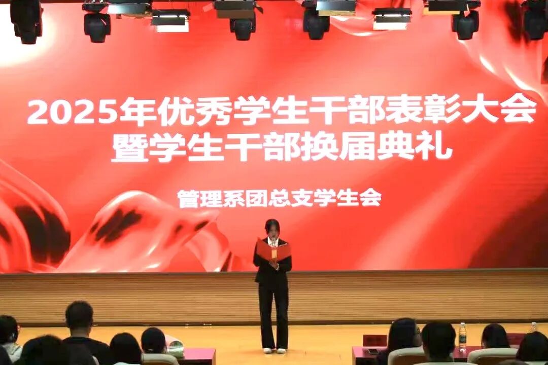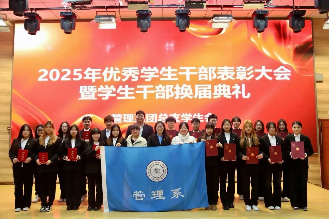 为表彰先进、树立典型,大会对过去一年表现突出的学生干部予以隆重表彰,授予许靖宜、周圣淇、王正炎统筹引领奖,刘奕翰、杨澜传播影响力奖,吕琳组织建设奖,于美婕、周蕊美育风尚奖,杨淑宇、董昊体育风尚奖,赵昱翔服务贡献奖。这十一位同学凭借优异的工作实绩与责任担当,获评管理系2024-2025学年“优秀学生干部”荣誉称号。