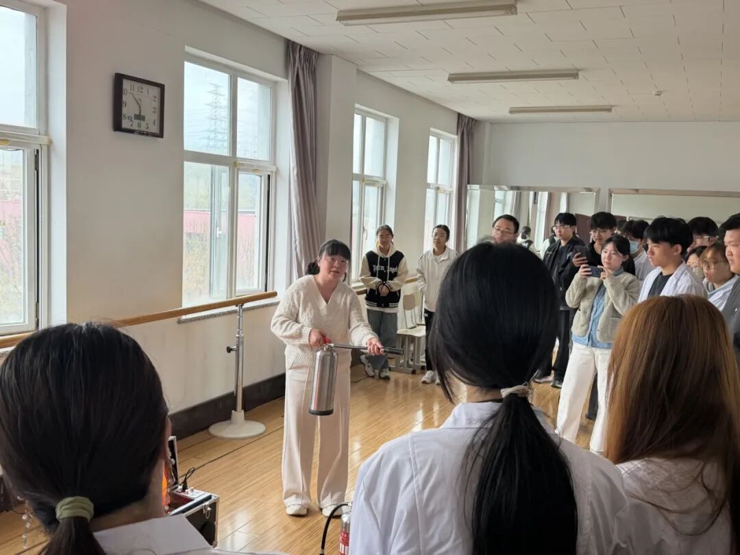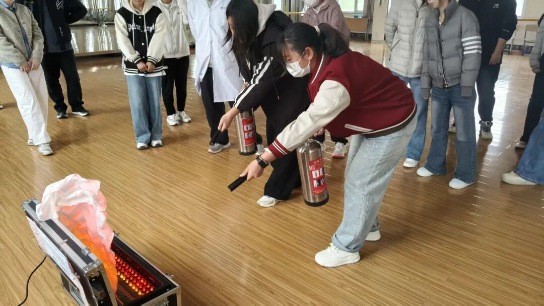 活动现场,老师首先通过理论讲解,向同学们系统普及了消防安全基础知识,详细介绍了火灾的成因、常见火灾类型、初期火灾扑救要点、火场逃生自救技巧等内容,重点拆解了灭火器的工作原理、适用场景与“提、拔、握、压”四字操作口诀,让同学们对消防安全知识形成了全面、系统的认知。