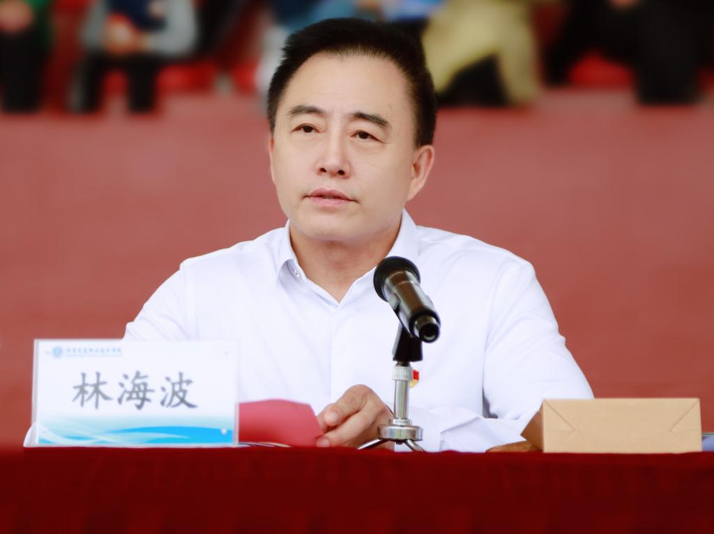 学院党委书记、院长林海波在开幕式致辞。他对此次运动会的召开表示祝贺,对筹备人员、运动员和裁判员表示感谢。他表示,学院高度重视体育工作,致力于提高学生的身心健康。他强调了体育对国家和民族的重要性,并对此次运动会提出三点希望:一是希望全体运动员发扬体育精神,呈现蓬勃的青春风貌;二是希望全体裁判员做到公开、公平、公正,恪尽职守;三是希望全体观众,服从管理,文明观赛,展现精神文明。最后,林院长祝愿交院学子们在此次运动会中展现昂扬的斗志并取得优异的成绩,以此向新中国成立75周年致敬,向学院建校40周年献礼。