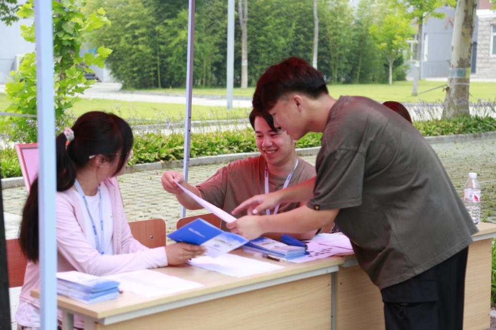 报到期间,学院领导班子来到各迎新点位,详细询问新生报到情况,向新生和家长们表达亲切关怀和问候,现场氛围轻松愉快。