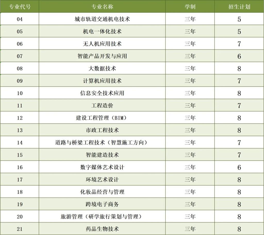 (2)城市轨道车辆应用技术专业考生要求:只招男生;身高1.7米以上,身体健康;双眼矫正视力4.8以上,无色盲色弱。