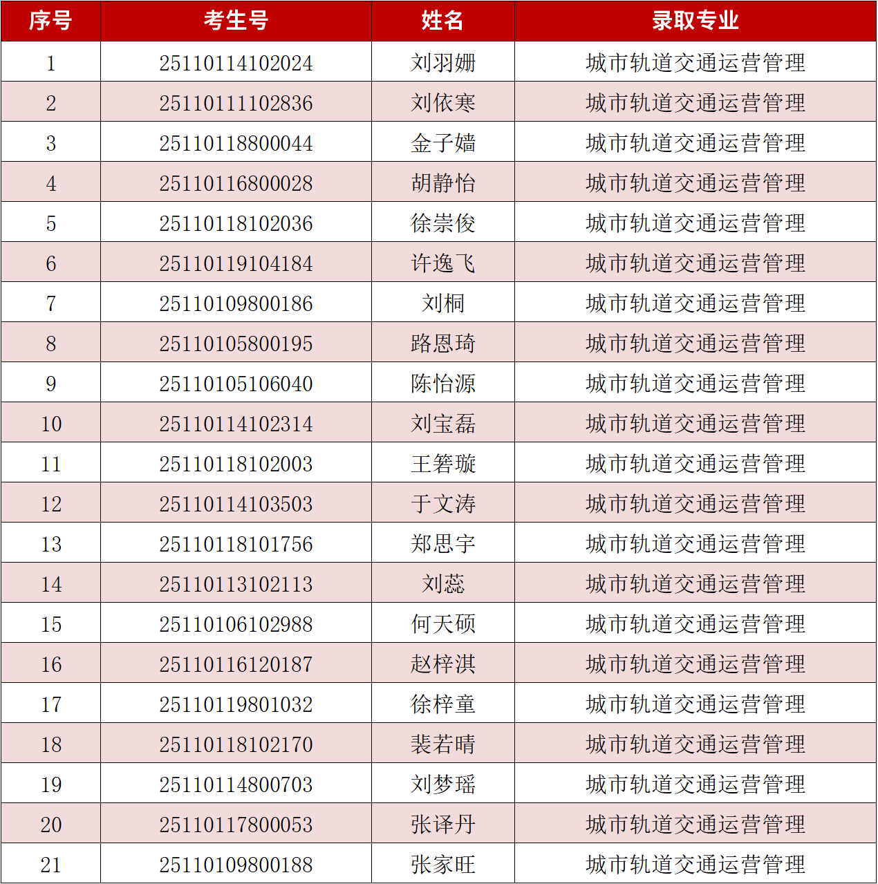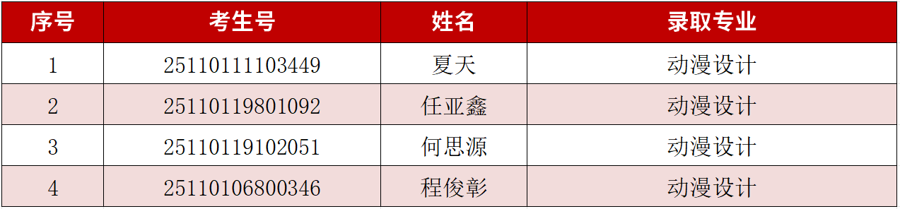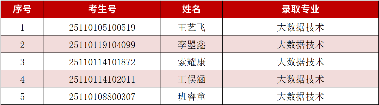 一、预录取名单