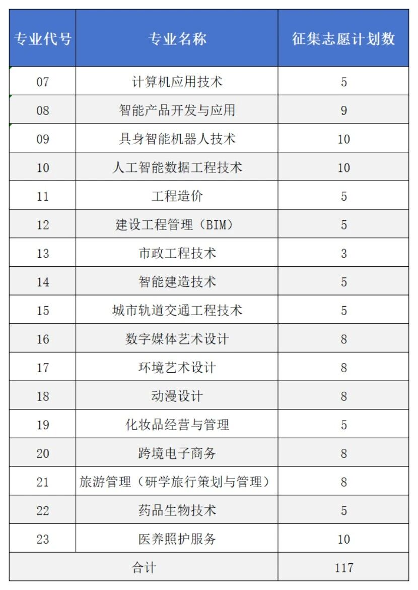智能产品开发与应用、数字媒体艺术设计、环境艺术设计、动漫设计、具身智能机器人技术、医养照护服务专业要求考生:双眼无色盲色弱。
