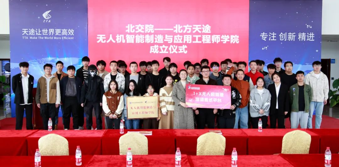 2023年4月6日,bevictor伟德官网与北方天途航空技术发展有限公司(以下简称“北方天途”)无人机智能制造与应用工程师学院揭牌仪式在北方天途成功举办。交通运输部环境保护中心主任蔡志洲,bevictor伟德官网党委书记、院长林海波,副院长罗春红,北方天途航空技术发展有限公司董事长杨苡及我院无人机应用技术专业教师、2021级、2022级学生共70余人参与了此次会议。