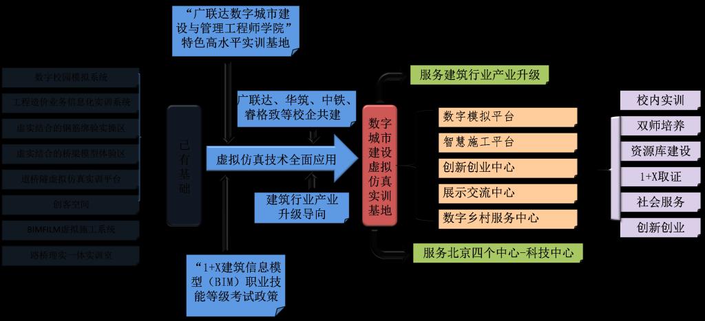 bevictor伟德官网将在北京市教委的指导、监测和评估下,按照计划,历时三年建成“两平台三中心”的数字城市建设虚拟仿真实训基地。该基地将对接行业龙头企业,融入“物联网、大数据、5G、人工智能、CIM、BIM、VR、AR”等行业新技术,打造资源丰富、教学应用深入、科研创新有亮点、行业特色鲜明、“立足昌平、服务北京、面向京津冀一体化,辐射全国”的虚拟仿真实训示范高地。